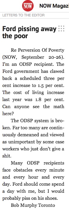 Letter to the Editor of NOW Magazine